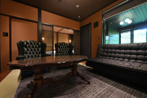 館内施設 : 貸切露天風呂〈梟(あうる)の杜〉〈梟(あうる)の月〉、個室料亭〈蜉蝣の流儀〉、個室ダイニング〈月の流儀〉、個室鉄板焼き〈匠の流儀〉、フロント、ラウンジ、プライベートバー〈學蓬〉、エステルーム〈瑠璃光〉、セレクトショップ〈想月庵〉、秘密の扉