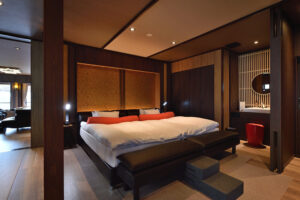 館内施設 : 貸切露天風呂〈梟(あうる)の杜〉〈梟(あうる)の月〉、個室料亭〈蜉蝣の流儀〉、個室ダイニング〈月の流儀〉、個室鉄板焼き〈匠の流儀〉、フロント、ラウンジ、プライベートバー〈學蓬〉、エステルーム〈瑠璃光〉、セレクトショップ〈想月庵〉、秘密の扉