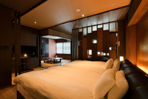 館内施設 : 貸切露天風呂〈梟(あうる)の杜〉〈梟(あうる)の月〉、個室料亭〈蜉蝣の流儀〉、個室ダイニング〈月の流儀〉、個室鉄板焼き〈匠の流儀〉、フロント、ラウンジ、プライベートバー〈學蓬〉、エステルーム〈瑠璃光〉、セレクトショップ〈想月庵〉、秘密の扉