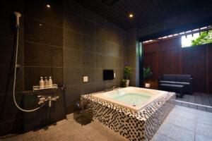 館内施設 : 貸切露天風呂〈梟(あうる)の杜〉〈梟(あうる)の月〉、個室料亭〈蜉蝣の流儀〉、個室ダイニング〈月の流儀〉、個室鉄板焼き〈匠の流儀〉、フロント、ラウンジ、プライベートバー〈學蓬〉、エステルーム〈瑠璃光〉、セレクトショップ〈想月庵〉、秘密の扉