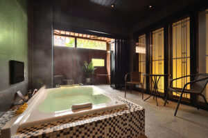 館内施設 : 貸切露天風呂〈梟(あうる)の杜〉〈梟(あうる)の月〉、個室料亭〈蜉蝣の流儀〉、個室ダイニング〈月の流儀〉、個室鉄板焼き〈匠の流儀〉、フロント、ラウンジ、プライベートバー〈學蓬〉、エステルーム〈瑠璃光〉、セレクトショップ〈想月庵〉、秘密の扉