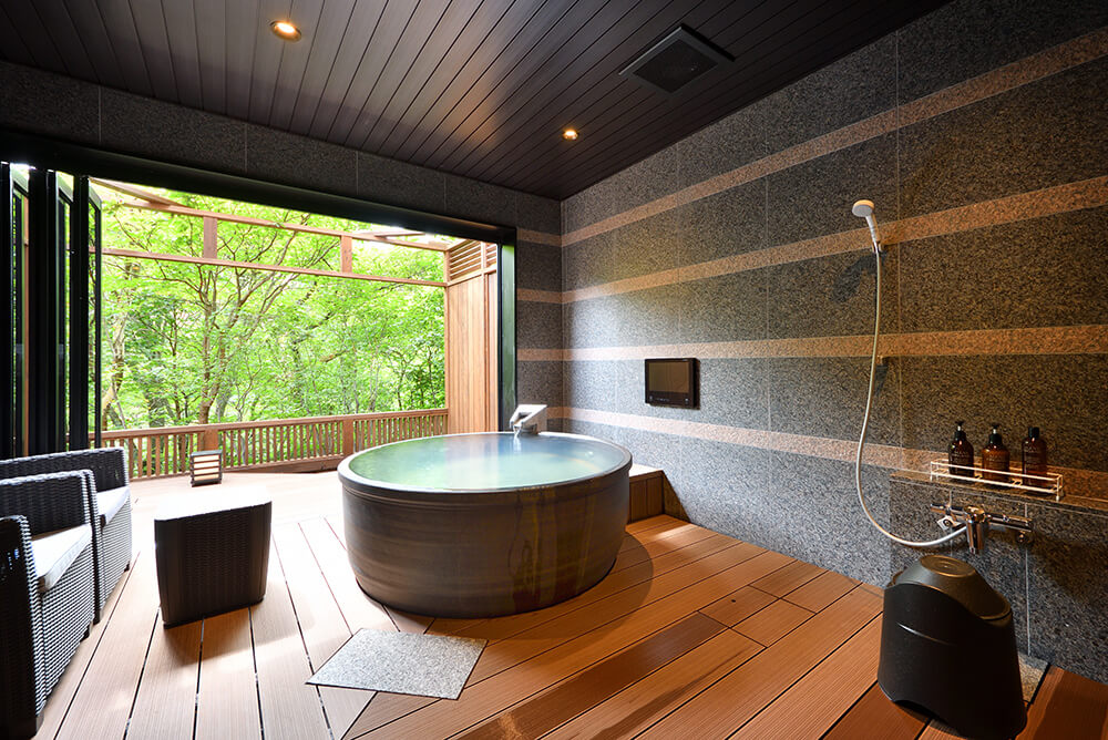 館内施設 : 貸切露天風呂〈梟(あうる)の杜〉〈梟(あうる)の月〉、個室料亭〈蜉蝣の流儀〉、個室ダイニング〈月の流儀〉、個室鉄板焼き〈匠の流儀〉、フロント、ラウンジ、プライベートバー〈學蓬〉、エステルーム〈瑠璃光〉、セレクトショップ〈想月庵〉、秘密の扉