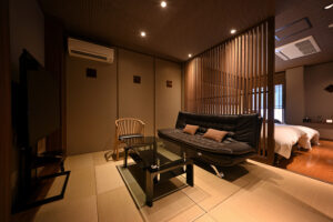 館内施設 : 貸切露天風呂〈梟(あうる)の杜〉〈梟(あうる)の月〉、個室料亭〈蜉蝣の流儀〉、個室ダイニング〈月の流儀〉、個室鉄板焼き〈匠の流儀〉、フロント、ラウンジ、プライベートバー〈學蓬〉、エステルーム〈瑠璃光〉、セレクトショップ〈想月庵〉、秘密の扉