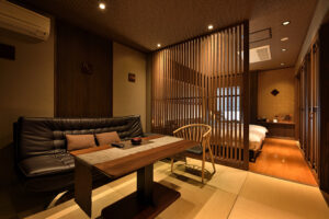 館内施設 : 貸切露天風呂〈梟(あうる)の杜〉〈梟(あうる)の月〉、個室料亭〈蜉蝣の流儀〉、個室ダイニング〈月の流儀〉、個室鉄板焼き〈匠の流儀〉、フロント、ラウンジ、プライベートバー〈學蓬〉、エステルーム〈瑠璃光〉、セレクトショップ〈想月庵〉、秘密の扉
