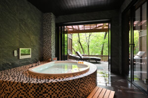 館内施設 : 貸切露天風呂〈梟(あうる)の杜〉〈梟(あうる)の月〉、個室料亭〈蜉蝣の流儀〉、個室ダイニング〈月の流儀〉、個室鉄板焼き〈匠の流儀〉、フロント、ラウンジ、プライベートバー〈學蓬〉、エステルーム〈瑠璃光〉、セレクトショップ〈想月庵〉、秘密の扉