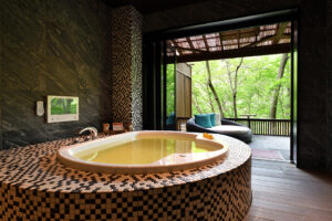 館内施設 : 貸切露天風呂〈梟(あうる)の杜〉〈梟(あうる)の月〉、個室料亭〈蜉蝣の流儀〉、個室ダイニング〈月の流儀〉、個室鉄板焼き〈匠の流儀〉、フロント、ラウンジ、プライベートバー〈學蓬〉、エステルーム〈瑠璃光〉、セレクトショップ〈想月庵〉、秘密の扉
