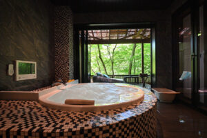 館内施設 : 貸切露天風呂〈梟(あうる)の杜〉〈梟(あうる)の月〉、個室料亭〈蜉蝣の流儀〉、個室ダイニング〈月の流儀〉、個室鉄板焼き〈匠の流儀〉、フロント、ラウンジ、プライベートバー〈學蓬〉、エステルーム〈瑠璃光〉、セレクトショップ〈想月庵〉、秘密の扉