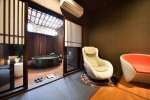 館内施設 : 貸切露天風呂〈梟(あうる)の杜〉〈梟(あうる)の月〉、個室料亭〈蜉蝣の流儀〉、個室ダイニング〈月の流儀〉、個室鉄板焼き〈匠の流儀〉、フロント、ラウンジ、プライベートバー〈學蓬〉、エステルーム〈瑠璃光〉、セレクトショップ〈想月庵〉、秘密の扉
