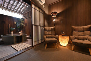 館内施設 : 貸切露天風呂〈梟(あうる)の杜〉〈梟(あうる)の月〉、個室料亭〈蜉蝣の流儀〉、個室ダイニング〈月の流儀〉、個室鉄板焼き〈匠の流儀〉、フロント、ラウンジ、プライベートバー〈學蓬〉、エステルーム〈瑠璃光〉、セレクトショップ〈想月庵〉、秘密の扉