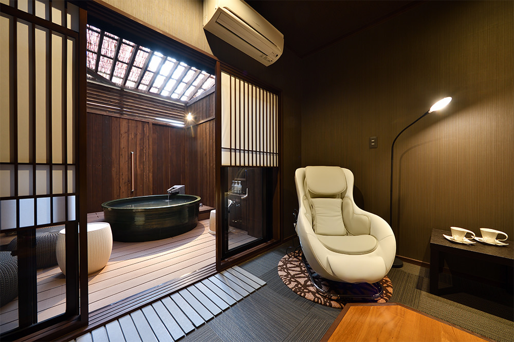館内施設 : 貸切露天風呂〈梟(あうる)の杜〉〈梟(あうる)の月〉、個室料亭〈蜉蝣の流儀〉、個室ダイニング〈月の流儀〉、個室鉄板焼き〈匠の流儀〉、フロント、ラウンジ、プライベートバー〈學蓬〉、エステルーム〈瑠璃光〉、セレクトショップ〈想月庵〉、秘密の扉